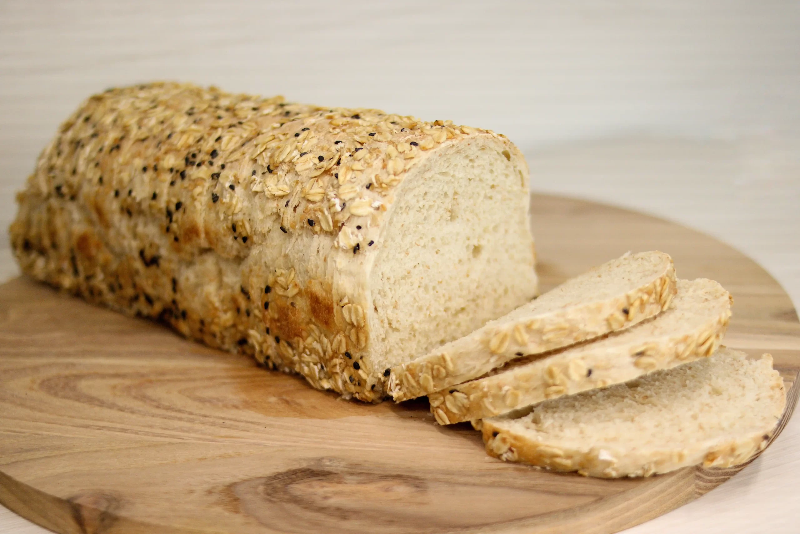 Hecho con masa madre dura y semillas de amapola, semillas de ajonjolí blanco, ajonjolí negro y hojuelas de avena.