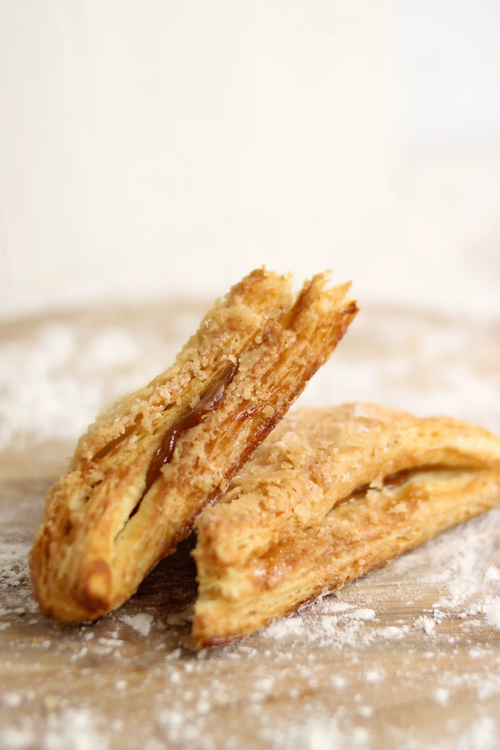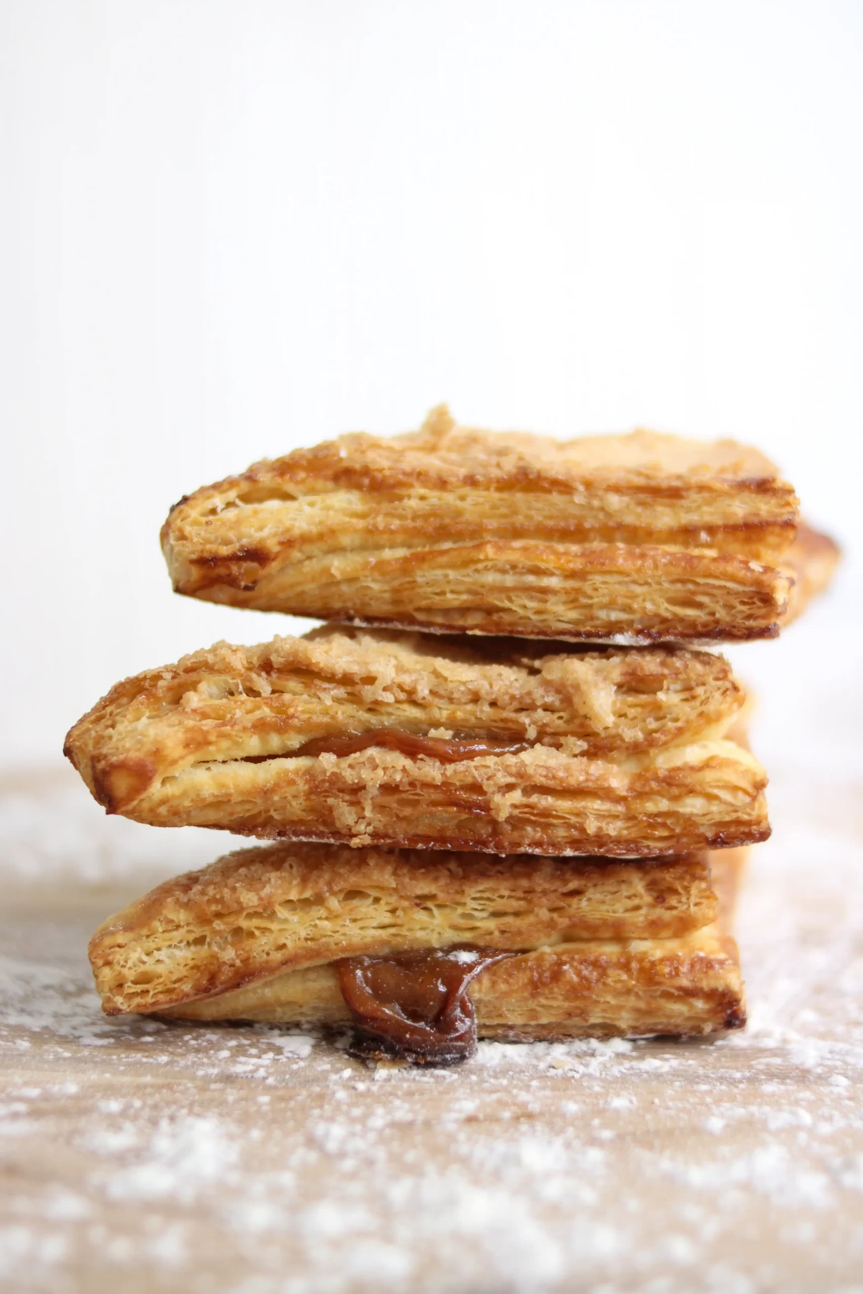 Relleno de arequipe, su hojaldre es 100% mantequilla